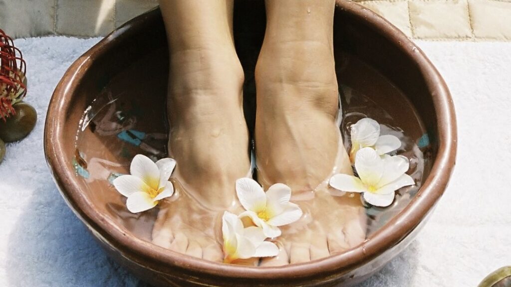 Grab a basin or a large bowl, fill it with warm water, add some Epsom salt, a drop or two of essential oil (lavender is a great choice), and maybe a few lemon slices if you’re feeling extra. Sit back for 10 to 15 minutes.